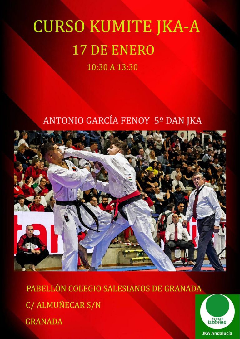 Nos complace invitarles al II CURSO KUMITE JKA que tendrá lugar el sábado 17 de enero de 2026 en la ciudad de Granada. Este evento será dirigido por el instructor Antonio G Fenoy, 5º Dan JKA, reconocido por su amplia experiencia y trayectoria en el ámbito del karate.